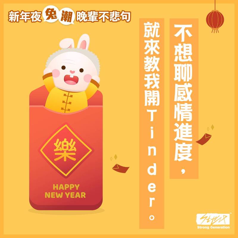 每逢新年時節,返鄉遊子回家最煩惱爸媽、長輩們的貼心詢問,從工作狀況、生小孩或是結婚了沒?都成為年輕人過節小擔憂。隨著科技浪潮發展,今年壯世代也變得更聰明,結合每天必傳的長輩圖與「兔潮」(吐槽)金句,悄悄把關愛融入貼圖中,讓長輩圖也能充滿「兔潮」感!